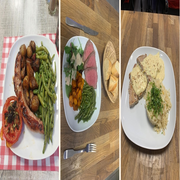 Le menu du Bistro Du Cours propose une variété de plats élaborés avec des produits locaux. La cuisine est toujours faite maison, avec un accent particulier sur les plats du jour. Parmi les incontournables, la saucisse de Toulouse se distingue, accompagnée de légumes grillés. La salade grecque et d’autres options végétariennes sont également disponibles. Les desserts, comme les gaufres, ajoutent une touche sucrée à l'expérience culinaire. Le choix de boissons est diversifié, avec des vins locaux et des alcools variés.